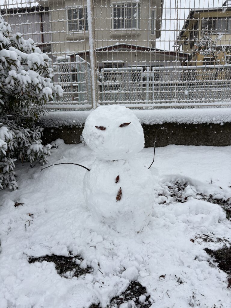 うえき不動産前の井ノ口第1児童遊園地で休憩時間に雪だるまを作ってみました。