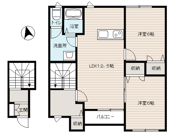| 間取り | 2LDK(洋 6・6 LDK 12.5) | ||